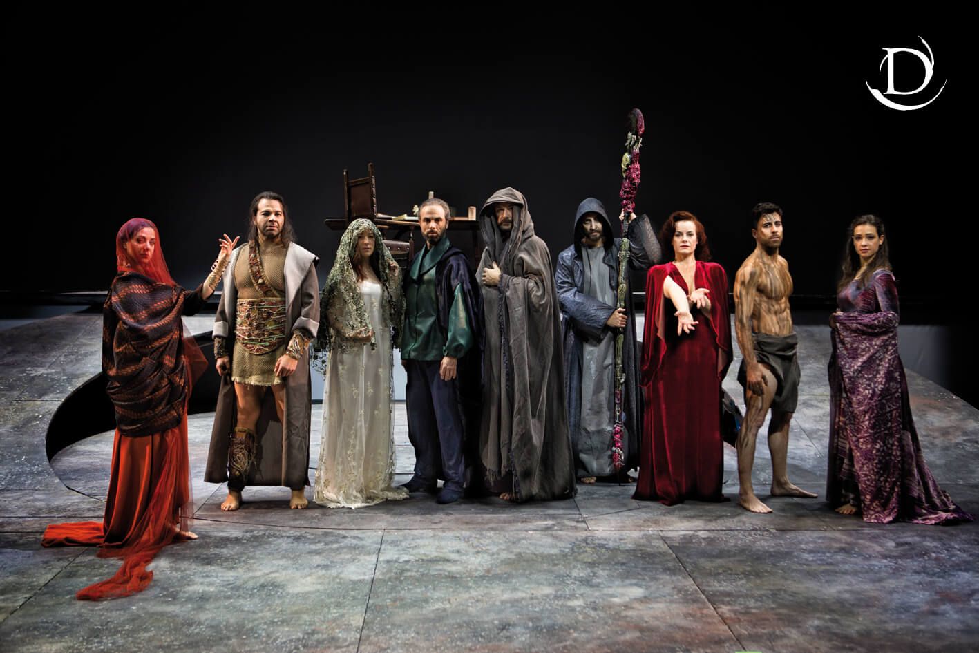 Sinossi – Dante è protagonista di un duplice viaggio, fisico e spirituale, che attraverso i tre regni ultramondani, Inferno, Purgatorio e Paradiso, diviene exemplum per l’umanità. Ne La Divina Commedia Opera Musical, Dante è in viaggio, su binari distinti e paralleli: da una parte vi è l’uomo che cammina verso e dentro sé stesso alla ricerca nostalgica del proprio esistere, dall’altra quell’uomo naviga tra le rovine della dannazione, tra le storture e le brutture del proprio limite, condotto tra vizi e ossessioni, perversioni e peccati. Lo spettacolo “La Divina Commedia Opera Musical” utilizza diversi linguaggi espressivi e asseconda l’inesauribile fantasia di Dante. Il Dante viaggiatore in scena diventa la proiezione fisica della voce di sé stesso, che nella magistrale interpretazione di Giancarlo Giannini (esclusiva voce narrante dello spettacolo), rappresenta la maturità di un Dante che si ricorda con tenerezza, quando a metà della propria esistenza, spinto da una forte depressione, trova nella scrittura una salvezza creativa e fertile. Lo smarrimento nella selva diventa evocazione di una memoria: pretesto fortunato e ispirazione per il capolavoro che viene “sfogliato” in scena, come libro animato, attraverso la magia teatrale. Dante si muove in molteplici ambienti scenici, nei quali si passa da coltri infuocate e sulfuree della Città di Dite a tempeste desolate e violente che colpiscono Francesca; da mari tempestosi e mortali, come quello di Ulisse a foreste pietrificate e mortifere, o a laghi ghiacciati, nei quali si trovano Pier delle Vigne prima ed Ugolino poi. Il viaggio non ha mai fine ed il maestro Virgilio accompagna il poeta di Firenze, proteggendolo, incoraggiandolo, esortandolo nei momenti di maggior difficoltà e abbandono. Gli ambienti che si susseguono, si fanno sempre più tenui, immersi nei boschi dai colori autunnali, come quelli di Pia dei Tolomei, o fiabeschi, come nel giardino di Matelda. Infine, luminosi e celestiali, come quelli che attendono Dante in occasione dell’incontro con Beatrice. La fantasia dantesca asseconda le suggestioni e la visione registica di Andrea Ortis. Le emozionanti e multicolori musiche orchestrali di Marco Frisina, sorreggono i testi suggestivi di Gianmario Pagano e Andrea Ortis. Il tutto si svolge su un palco modulare automatico con sollevamento di piani e con la presenza di elementi scenici costruiti su disegno di Lara Carissimi, con la presenza di proiezioni di ultima generazione animate in 3D. Non mancano coreografie acrobatiche e multiformi dirette da Massimiliano Volpini e un allestimento luci su